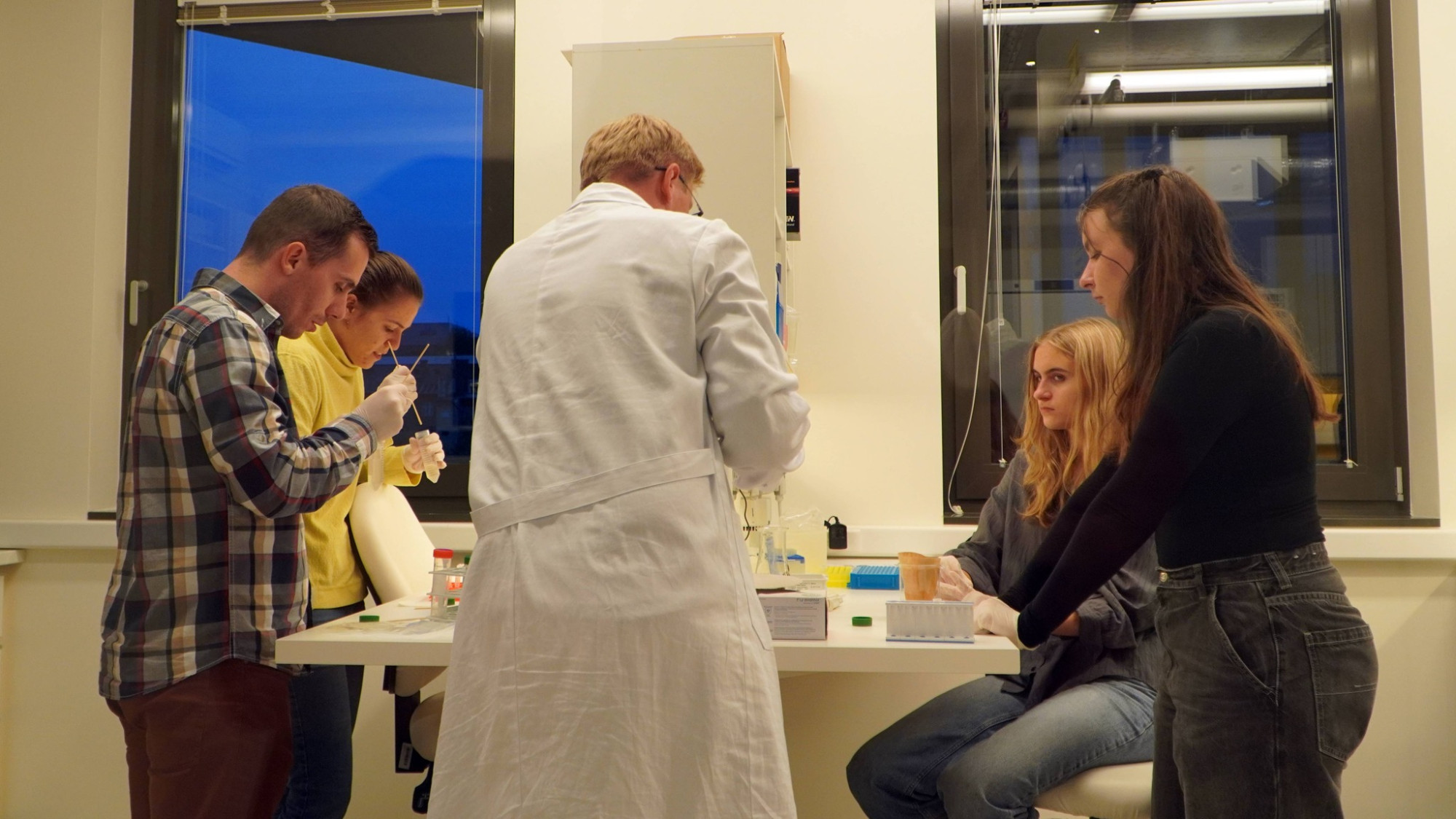 A látogatók beléphettek a laborok világába: az ELTE HTK Archeogenomikai Kutatóintézet kutatói bemutatták, miként nyerhető ki DNS évszázados maradványokból. Lehetőség volt arra is, hogy a látogatók kipróbálják, hogyan lehet kimutatni a DNS-t – akár otthoni körülmények között is – egy banánból.