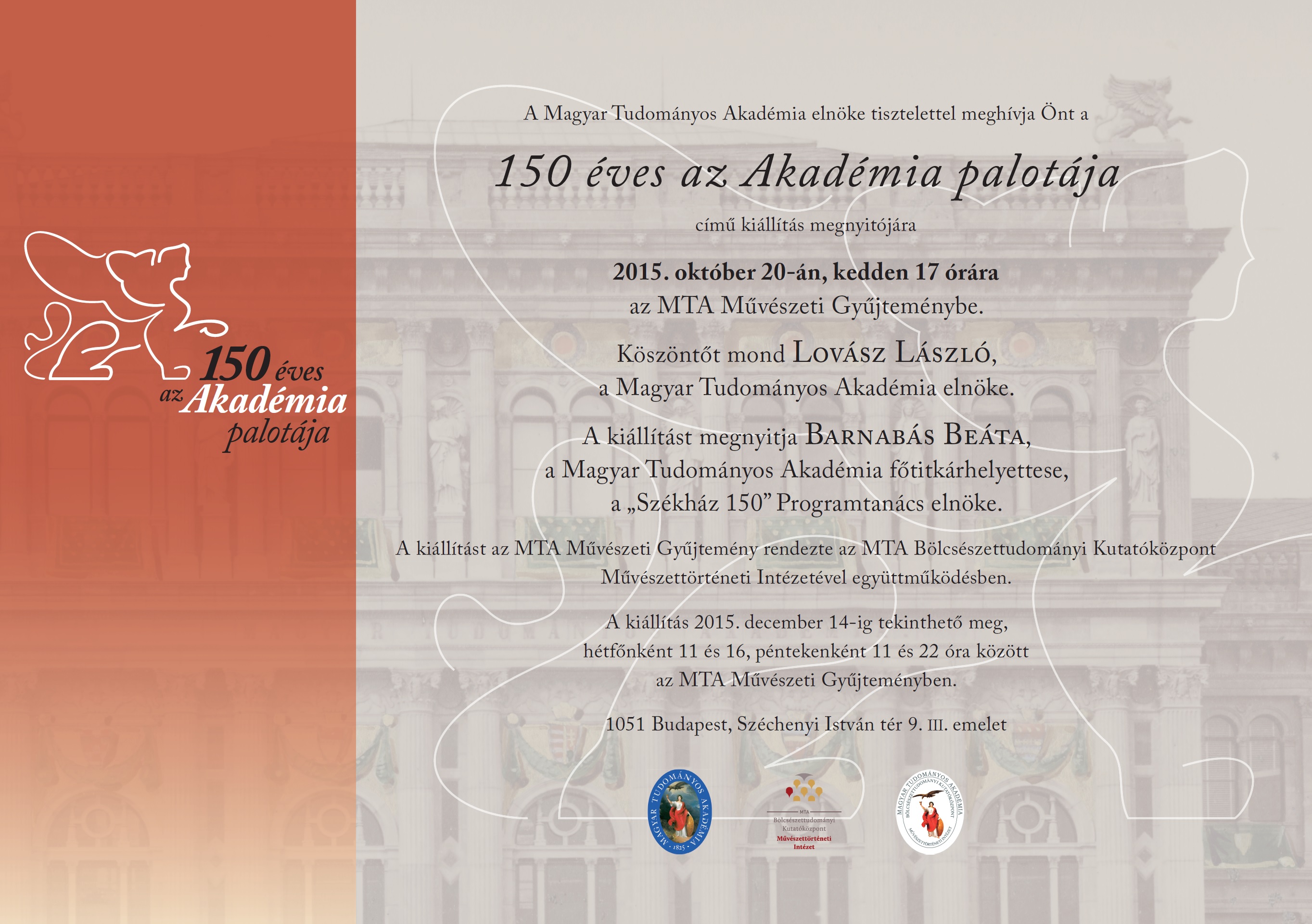 A „Zrínyi Miklós – Szigetvár 1566” Emlékbizottság és a Magyar Tudományos Akadémia Zrínyi Miklós és katonatársai hősi halálának 450. évfordulóján emlékhangversenyt tart az MTA dísztermében 2016. október 11-én 19:00 órai kezdettel. Az ünnepi beszédet Vékás Lajos, az MTA alelnöke mondja, az est házigazdája Fodor Pál, kutatóközpontunk főigazgatója, az MTA Bölcsészettudományi Kutatóközpont Történettudományi Intézet igazgatója lesz. A meghívó itt látható.